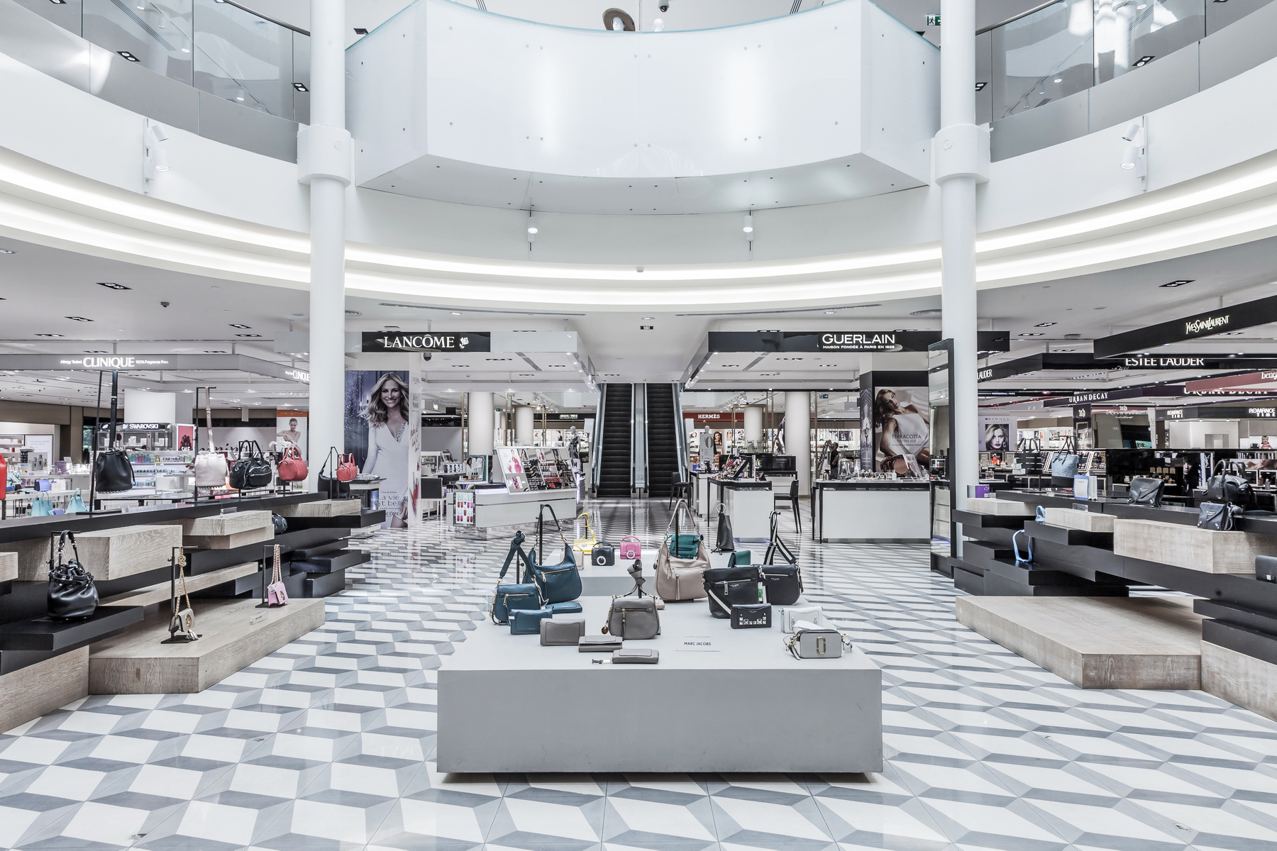 The premium, bold and contemporary design aesthetic features clean sight lines, unique focal points and stand out materials. A key design feature is a statement pattern floor that anchors each level in-store, referencing traditional Lebanese tiles with a thoroughly contemporary approach.