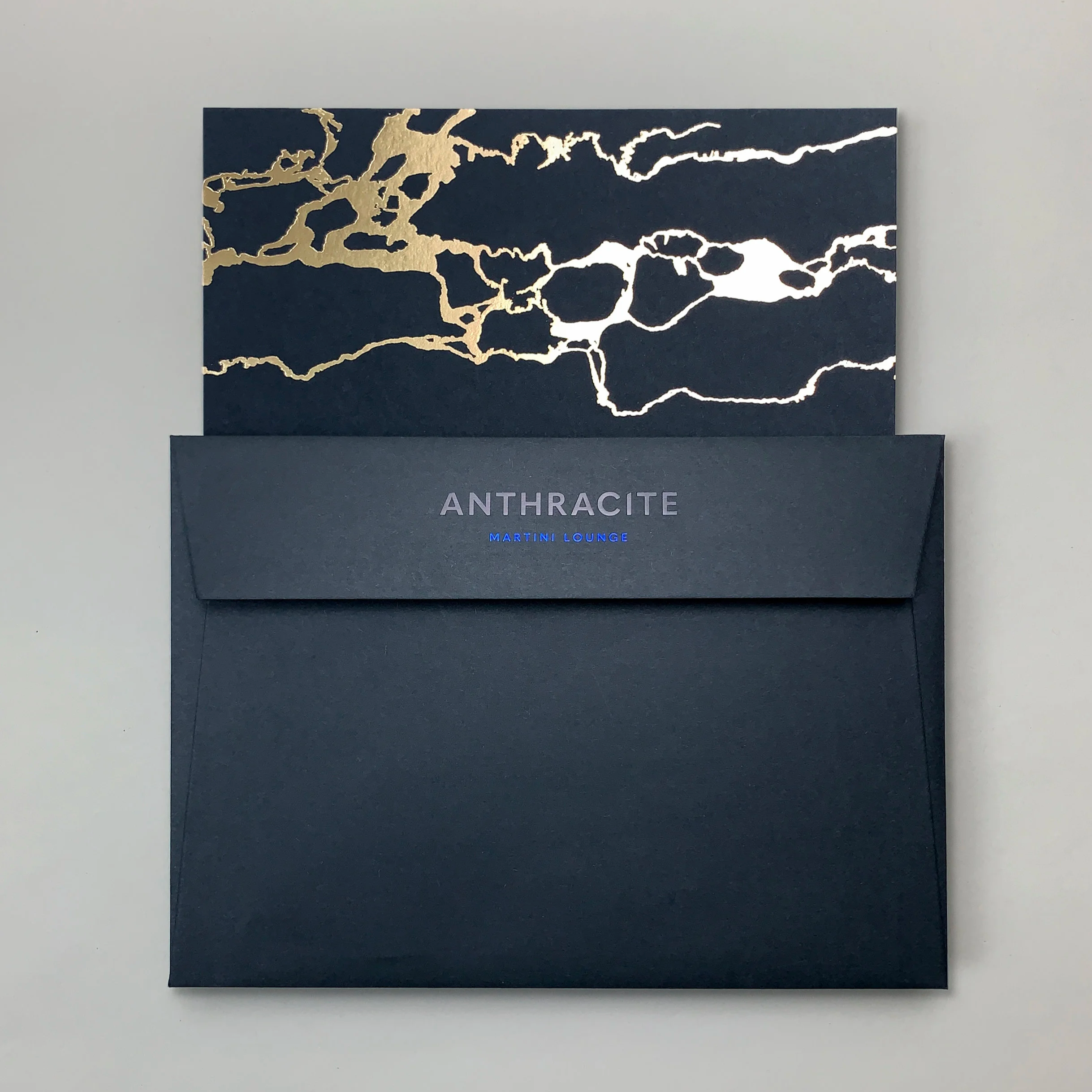 The brand expression is inspired by the passive and active attributes of anthracite. In its raw state the material is near-black with a submetallic lustre. With the fewest impurities of any coal, it burns hotter with an intense blue flame and long-lasting heat. The branding reflects this smouldering tension, combining a timeless elegance with a darker edge of seductive glamour. It’s vibrant and tactile, passionate and spirited; suggestive of sophisticated indulgence with a touch of subversion.