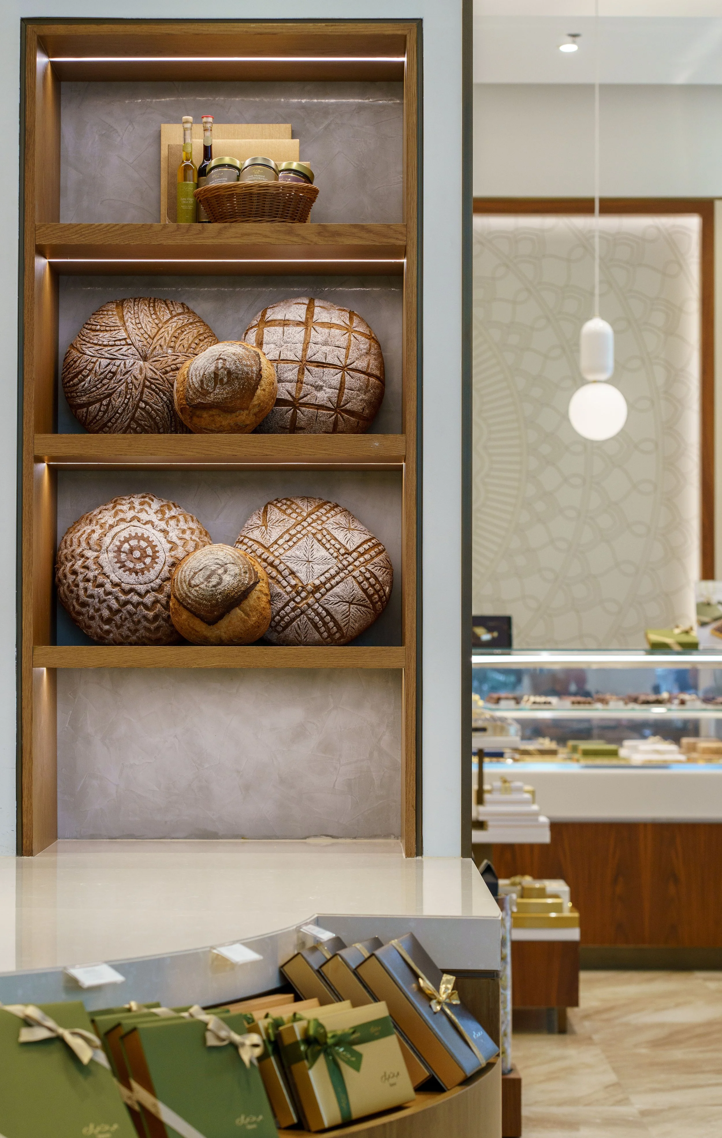 Building on this legacy, we collaborated with Bateel to create Bateel El’an, a premium fast-casual café bakery that offers the same hallmark quality in a stylish yet relaxed environment. Designed to provide a sensory experience centered on freshly curated ingredients, the interiors, branding, packaging, and uniforms exude warmth and approachability. While distinct from the main Café Bateel, Bateel El’an maintains its connection through a thoughtful palette of materials, details, and colors, delivering a compact, quick-service format. This concept meets the needs of modern consumers seeking premium artisanal pastries, gourmet sandwiches, and single-origin coffees—combining convenience with Bateel’s enduring commitment to excellence.